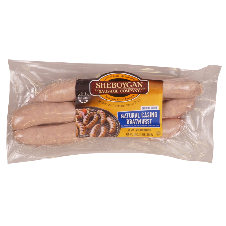 Original Recipe Fully Cooked 6:1 Natural Casing Bratwurst 6/1.5 Lb Packages