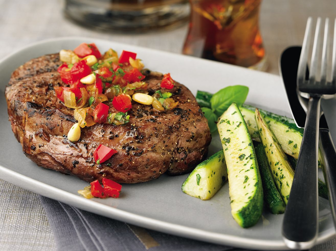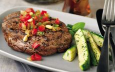 Beef Chuck Eye Steaks are brushed with molasses and served with a caramelized onion relish. Got a hankering for a good steak? Try this recipe tonight.